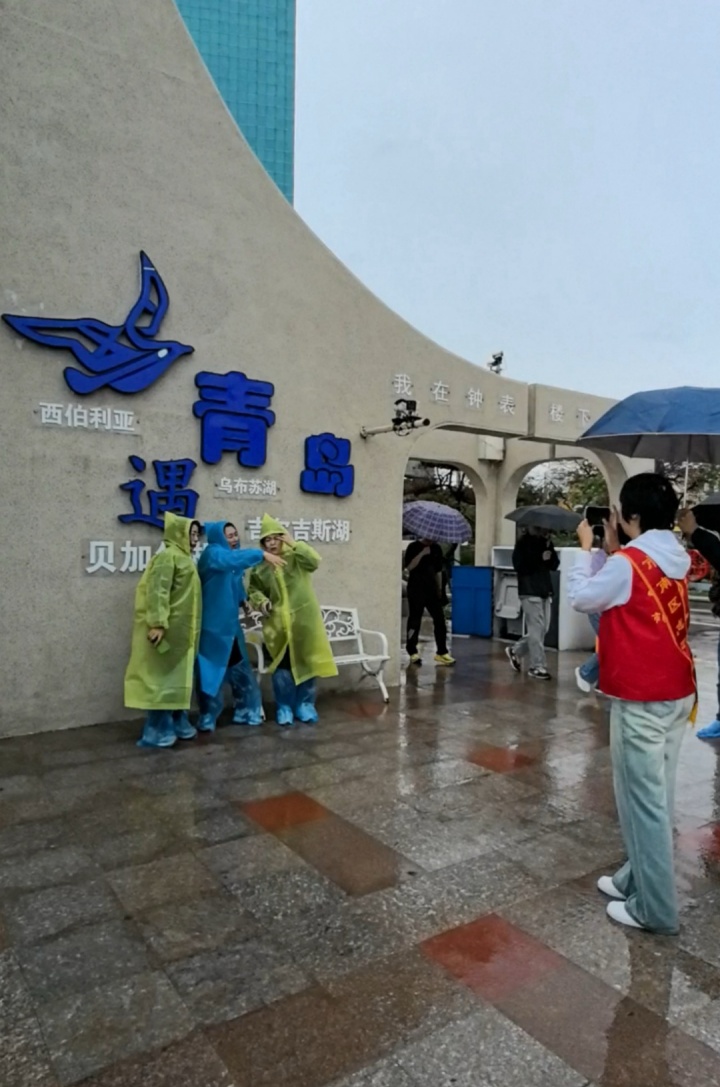 志愿者雨中幫游客拍照