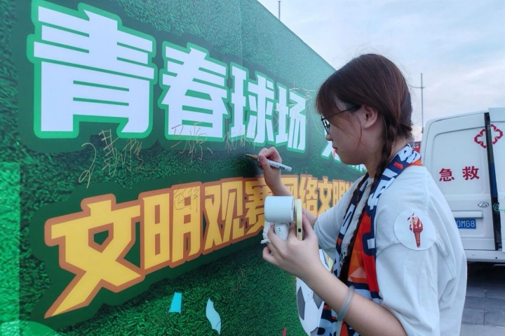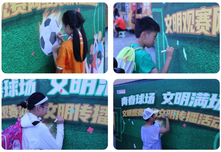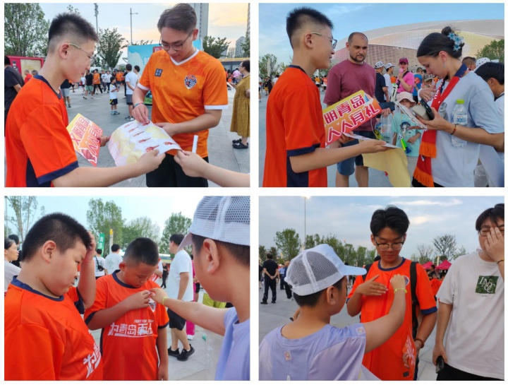 賽場外,青島文明網(wǎng)精心布置了“最美入場通道”,為親子家庭和球迷們帶來了一場“賽前熱身”?!斑青?!我與文明合張影”“簽下您的文明承諾”“互動問答”等環(huán)節(jié)吸引了大小球迷們的踴躍參與?!坝^賽時哪些行為是文明的?”“如何做一名合格的‘第十二人’?”……一個個貼近實(shí)際的問題引發(fā)了大家的熱烈討論和積極搶答,在歡聲笑語中,文明觀賽的理念悄然深入人心。
